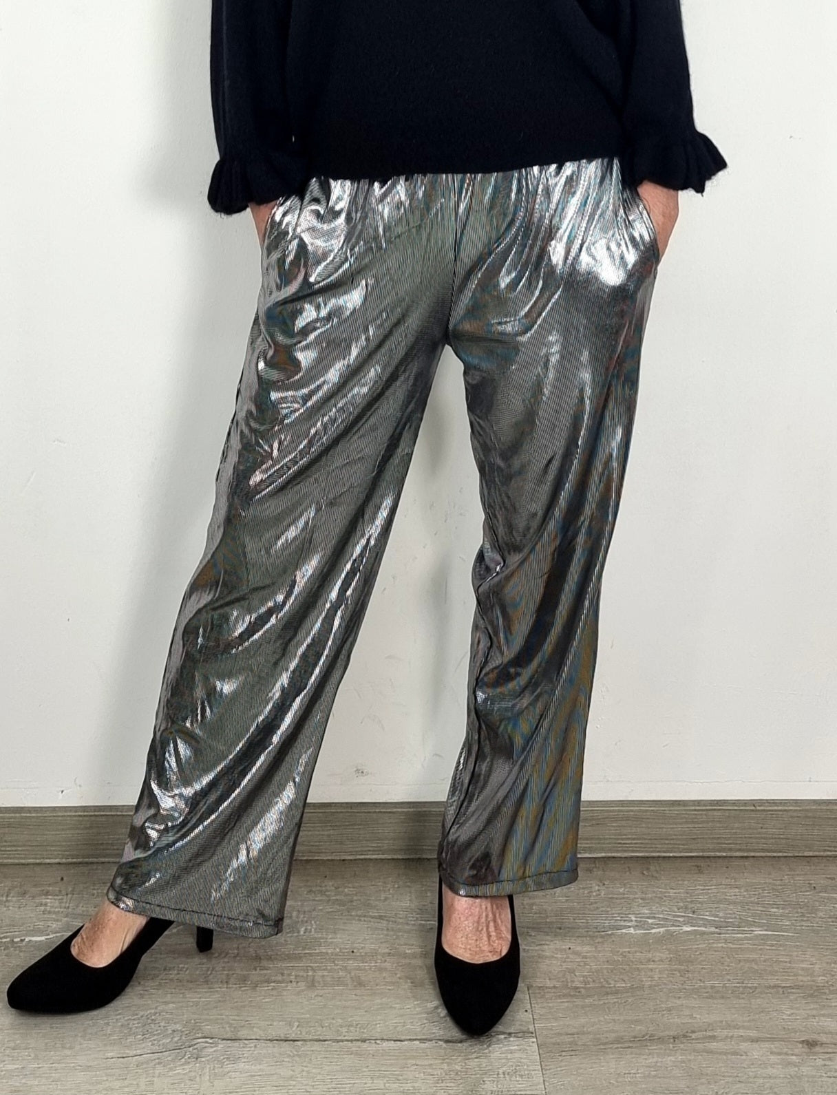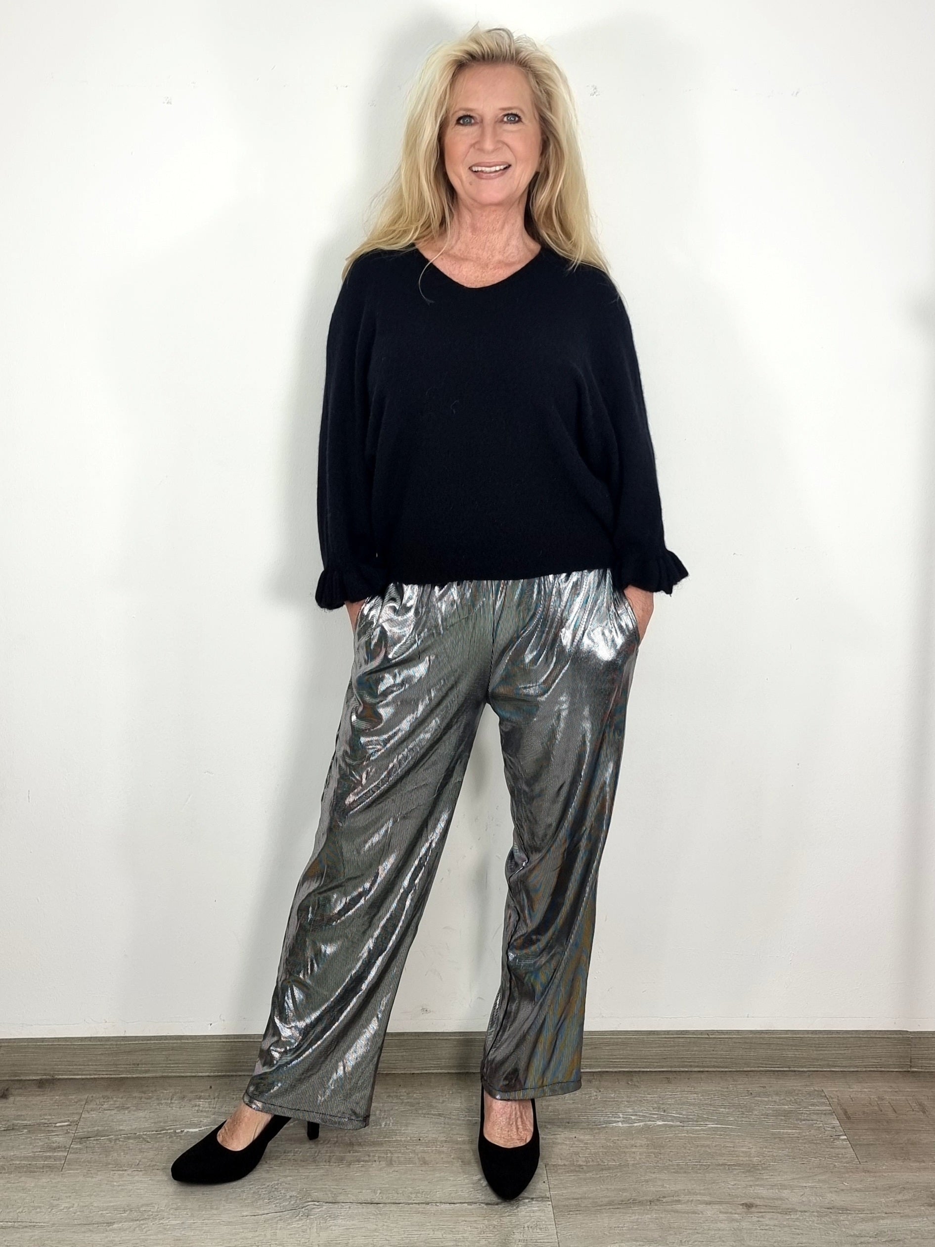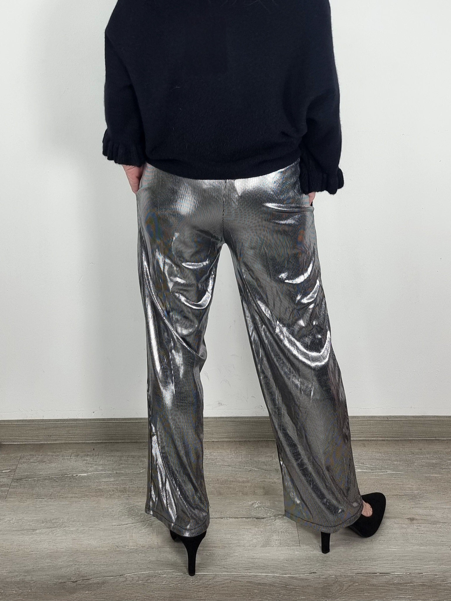 Diese Hose bringt festlichen Glamour in deine Garderobe. Das schimmernde Material reflektiert das Licht wunderschön und macht sie ideal für besondere Anlässe wie Weihnachten und Silvester.