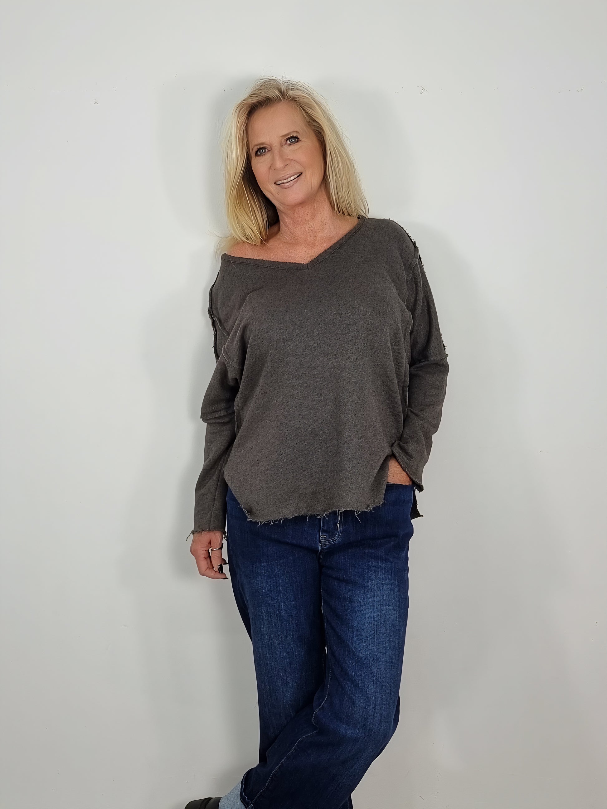 🌿 Lässiges V-Neck Shirt mit ausgefransten Nähten