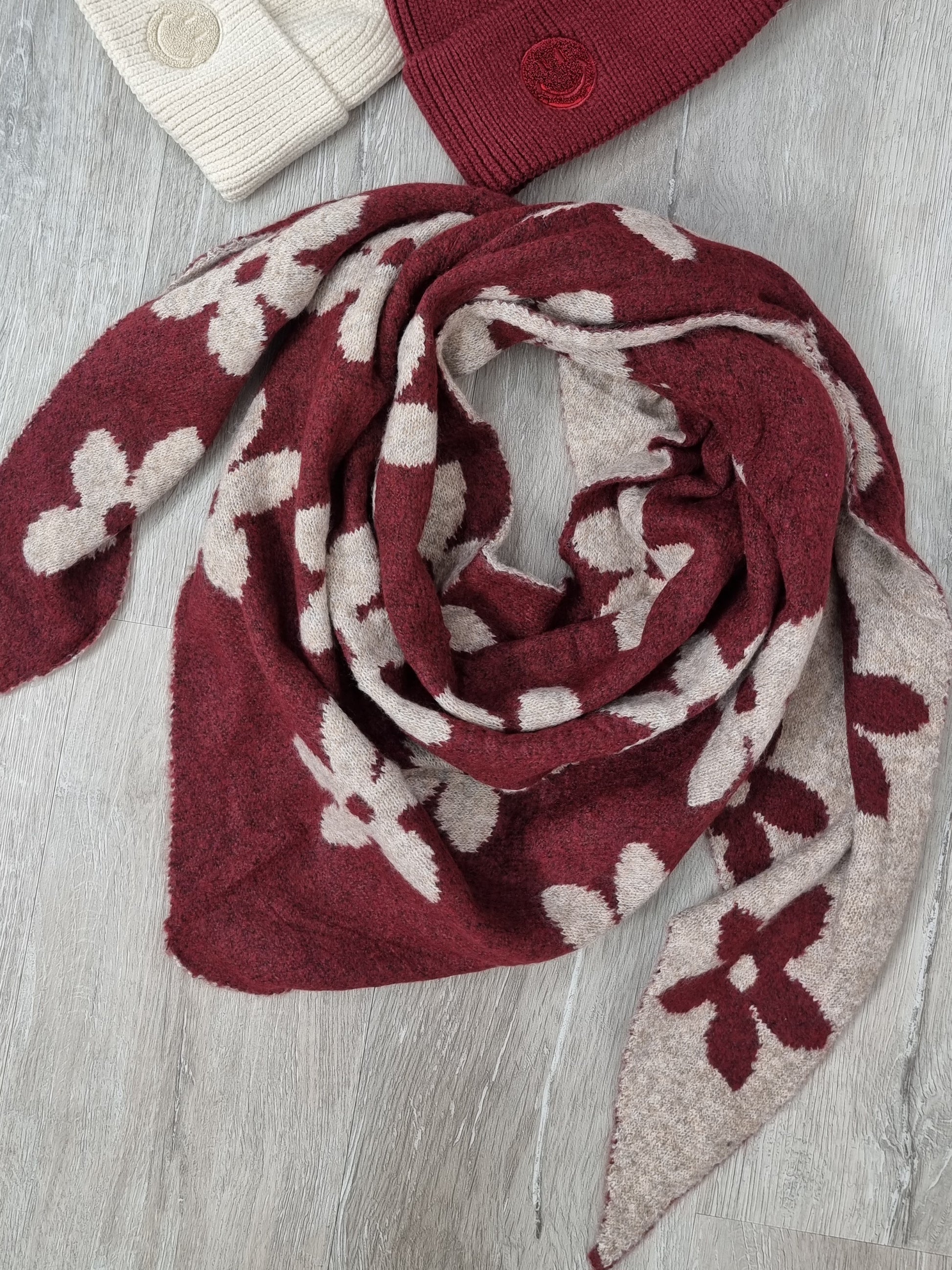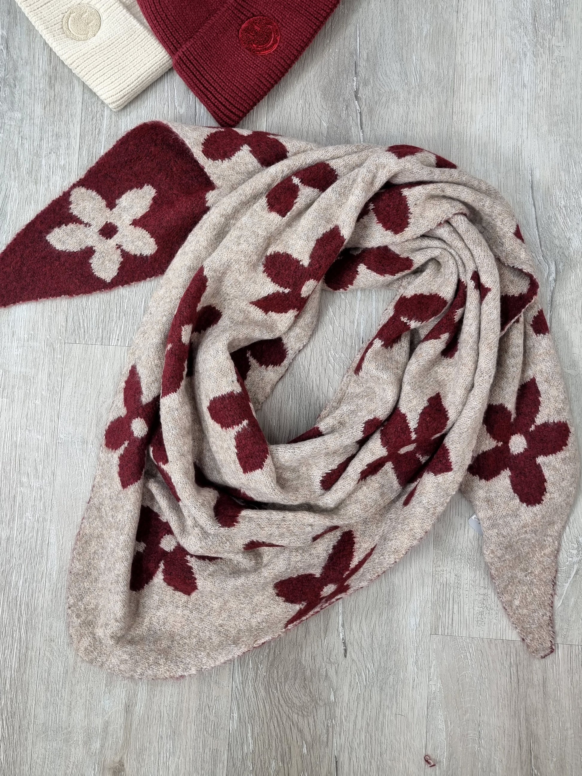 Stylisches, kuschelig weiches Dreieckstuch mit Blumen. Beidseitig tragbar – zwei Looks in einem!