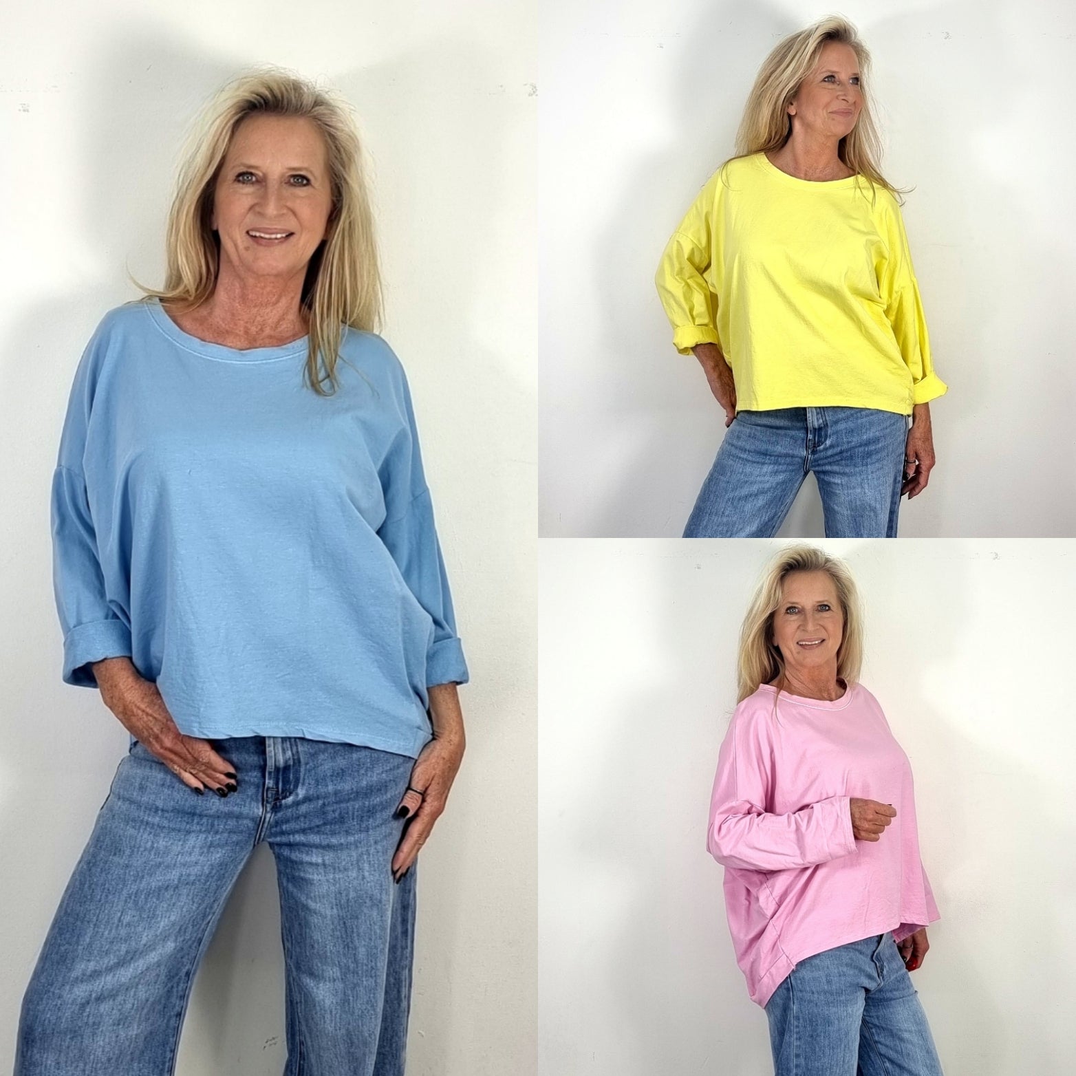 Dieses leichte Oversize-Oberteil ist der perfekte Alltagsbegleiter! Durch den weiten, lockeren Schnitt sitzt es angenehm und kaschiert gleichzeitig kleine Problemzonen.