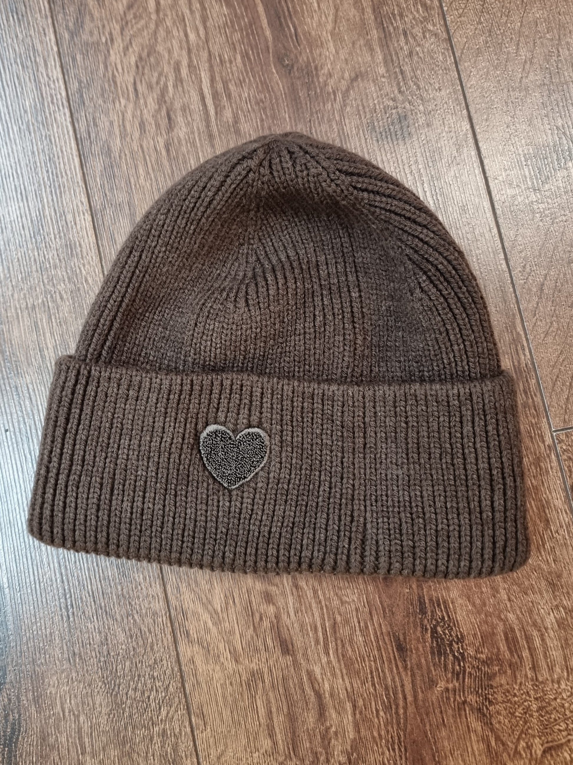 Diese weiche Strickmütze in warmem Braun ist der perfekte Begleiter für kalte Tage. Das Herz setzt einen stylischen Akzent und verleiht der klassischen Mütze das gewisse Etwas.