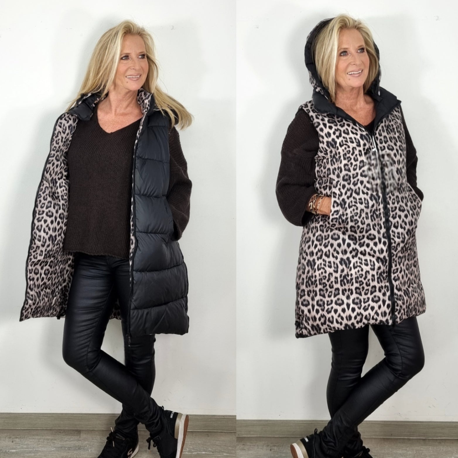 Die softe Steppweste  lässt sich im Handumdrehen wenden – auf der Innenseite wartet ein cooler Leopardenprint, der deinem Outfit sofort das gewisse Etwas verleiht. 🐆